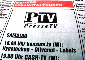 © Foto OnlineReports ![]() "Bereitschaft grundsätzlich vorhanden": Verlegerfernsehen Presse-TV Presse-TV: Jean Frey noch vor der Tür Schweizer Verlegerfernsehen: Ohne Identität kein Verwaltungsratsmandat VON PETER KNECHTLI Das Verlegerfernsehen "Presse-TV" (PTV) will den Jean-Frey-Verlag erst in den Verwaltungsrat aufnehmen, wenn dessen Besitzverhältnisse geklärt sind. Dies beschloss der PTV-Verwaltungsrat am Freitag. Dannzumal wird der Einfluss der Basler Mediengruppe schwinden, doch an ihren Produktionen "Café Bâle" und "Standpunkte" will sie festhalten. Das Privatprgramm, am Wochenende auf SF2 betrieben, wird getragen von den drei Verlagshäusern Ringier, NZZ und Basler Mediengruppe (Cash TV, Sprechstunde Gesundheit, Format NZZ, Café Bâle und verschiedene