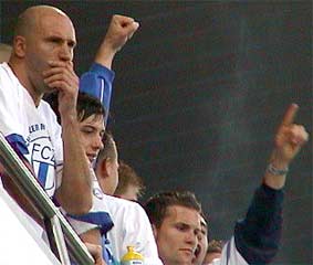 wie schön wär's gewesen, wenn wenigstens kommentare wie "Trainer, Captain und Präsidentin haben zugeschaut" ins reich der phantasie verbannt werden könnten. leider widerspiegeln sie exakt die wahrheit: was für ein auftritt, was für eine pr-aktion, wenn sich die mannschaft, der trainer (anstatt sich in den katakomben depressiv in sein schicksal zu ergeben!) und nicht zuletzt die überkandidelte madame präsidentin in den polizeikordon eingereiht hätten (aus nachvollziehbaren sicherheitsgründen unter umständen auch im zweiten glied), gegen die gewaltakrobaten losmarschiert wären und damit unübersehbar demonstriert hätten: "hallo jungs, mit UNS nicht."