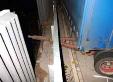MUTTENZ. - Glimpflich ging gestern Freitagabend ein spektakulärer Verkehrsunfall an der Birsfelderstrasse auf der Höhe der Liegenschaft Nummer 93 in Muttenz aus. Kurz vor 20.30 Uhr löste sich bei einem Lastwagen mit dänischen Kontrollschildern, der in Richtung Basel/Autobahneinfahrt unterwegs war, der Anhänger und machte sich selbständig. Dabei geriet das führungslose Gefährt an den rechten Strassenrand und kollidierte dort mit der Leitplanke. Danach prallte die Deichsel des Anhängers gegen ein Element der dortigen Lärmschutzwand. Durch den heftigen Aufprall wurde ein mehrere Tonnen schweres Element der Lärmschutzwand aus der Verankerung gerissen und auf das direkt darunter verlaufende Geleise der SBB geschleudert. Wenige Sekunden später näherte sich ein Regionalzug ("S3") mit über 100 Stundenkilometern in Richtung Basel. Der Lokomotivführer leitete zwar eine Schnellbremsung ein, konnte aber nicht verhindern, dass die Zugskomposition über die Bruchstücke des Wandelementes fuhr.
