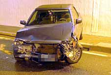 BIEL-BENKEN. - Unfall gebaut und angetrunken weitergefahren! Heute Samstagmorgen um 5.10 Uhr fuhr in Biel-Benken ein 24-jähriger Automobilist aus Richtung Oberwil auf der Eichgasse in der Absicht, nach rechts in die Therwilerstrasse abzubiegen. Kurz vor der Verzweigung kollidierte er infolge Angetrunkenheit und mangelnder Aufmerksamkeit mit einem Inselpfosten und einem auf der Insel stehenden Baum. Danach entfernte er sich mit seinem Auto von der Unfallstelle. Aufgrund der starken Beschädigung blieb das Auto auf der Leymenstrasse kurz vor dem Grenzübergang stehen. Beim fehlbaren Lenker, der sich beim Fahrzeug befand, wurde laut Polizeiangaben ein "erhöhter Alkoholwert" festgestellt. Seinen Fahrausweis musste er sogleich abgeben. (30. Dezember 2006)