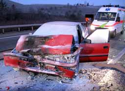 Das Auto, das auf das Fahrzeug mit deutschen Kontrollschildern aufgefahren war, geriet im Motorenbereich in Brand (Bild). Die beiden Insassen konnten durch eine Drittperson, die auf dem Pannenstreifen angehalten hatte, rasch befreit werden. Der 83-jährige Lenker verstarb jedoch kurze Zeit später am Unfallort. Seine mitfahrende Frau wurde schwer verletzt. Im Auto aus Deutschland erlitten zwei Personen schwere Verletzungen, der Lenker wurde leicht verletzt. Der Lenker, der einen Selbstunfall verursacht hatte, blieb unverletzt. Sämtliche Verletzten befinden sich im Spital. An allen drei involvierten Fahrzeugen entstand Totalschaden. Die Autobahn A2 blieb in Fahrtrichtung Bern/Luzern im entsprechenden Bereich bis um 11 Uhr komplett gesperrt. (27. Dezember 2006)