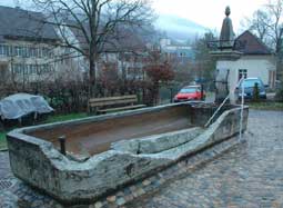 THÜRNEN. - Heute Samstagmorgen um kurz nach 7 Uhr kollidierte in Thürnen auf der Hauptstrasse ein in Richtung Sissach fahrender Lieferwagen mit dem rechtsseitigen Dorfbrunnen und Betonpflanztrögen. Durch die heftige Kollision wurde der um 1859 erbaute und unter Heimatschutz stehende Dorfbrunnen (Bild) beinahe vollständig zerstört. Nach der Kollision ergriff der Lenker des Lieferwagens umgehend zu Fuss die Flucht. Dank einer guten Beschreibung des Lenkers durch Zeugen, konnte der Flüchtende kurze Zeit später durch eine Polizeipatrouille noch in Thürnen festgenommen werden. Da ein durchgeführter Alkoholtest positiv verlief, wurde beim mutmasslichen 18-jährigen Lenker eine Blutprobe angeordnet und sein Führerausweis, den er erst vor 29 Tagen erhielt, vor Ort entzogen. Der Lenker zog sich durch die Kollision leichte Verletzungen zu. Er wurde durch die Polizei in Spitalpflege verbracht. Der Sachschaden am Dorfbrunnen, den Pflanztrögen und am stark beschädigten Lieferwagen dürfte einige zehntausend Franken betragen. Da eine grössere Menge Motorenöl auslief, musste die Feuerwehr Thürnen zur Fahrbahnreinigung aufgeboten werden. (31. März 2007)