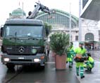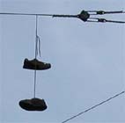 in luftiger Höhe an einem BVB-Fixierdraht auf dem Basler Barfüsserplatz am